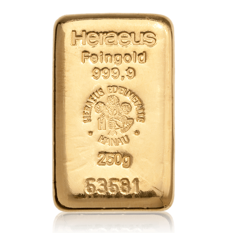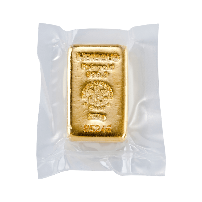 Yes. The 250g Heraeus gold bar is often chosen by investors seeking a balance between affordability and lower premiums per gram compared with smaller gold bullion bars.