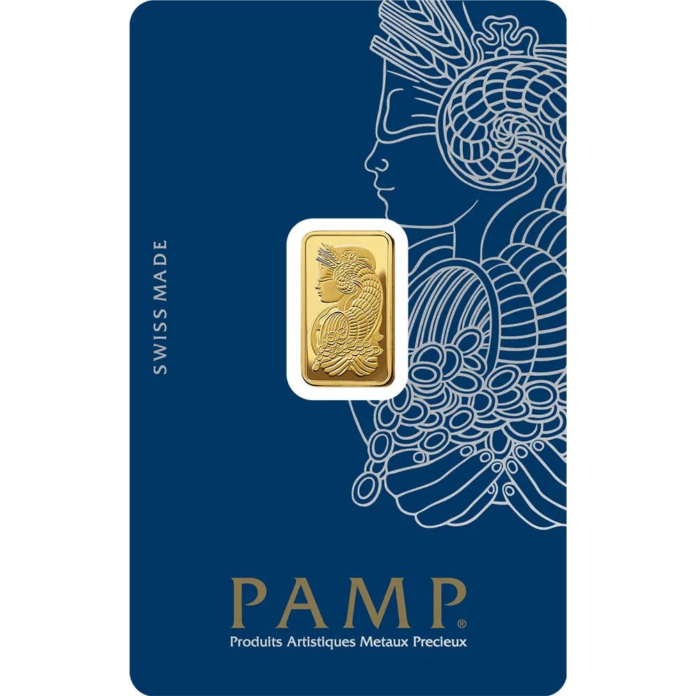 PAMP was the first precious metals brand to ever decorate the reverse sides of its minted bars. Introduced in 1979, the Lady Fortuna™ was the original of those artistic motifs and is today world-renowned as a trusted symbol assuring PAMP quality excellence and authenticity. With a distinctive proof-like finish, the Roman goddess of prosperity is portrayed with all her mythical attributes: Sheaves of wheat, poppies, horn of plenty, precious coins, and wheel of fortune. Undoubtedly, the iconic Lady Fortuna™ image is the most recognized and prestigious bullion bar design in the world. Accredited by the Swiss Federal Bureau, each bar is individually registered and sealed within protective CertiPAMP™ packaging with an integrated and official Assay Certificate that guarantees fine precious metal content and weight, protected with a removable film.